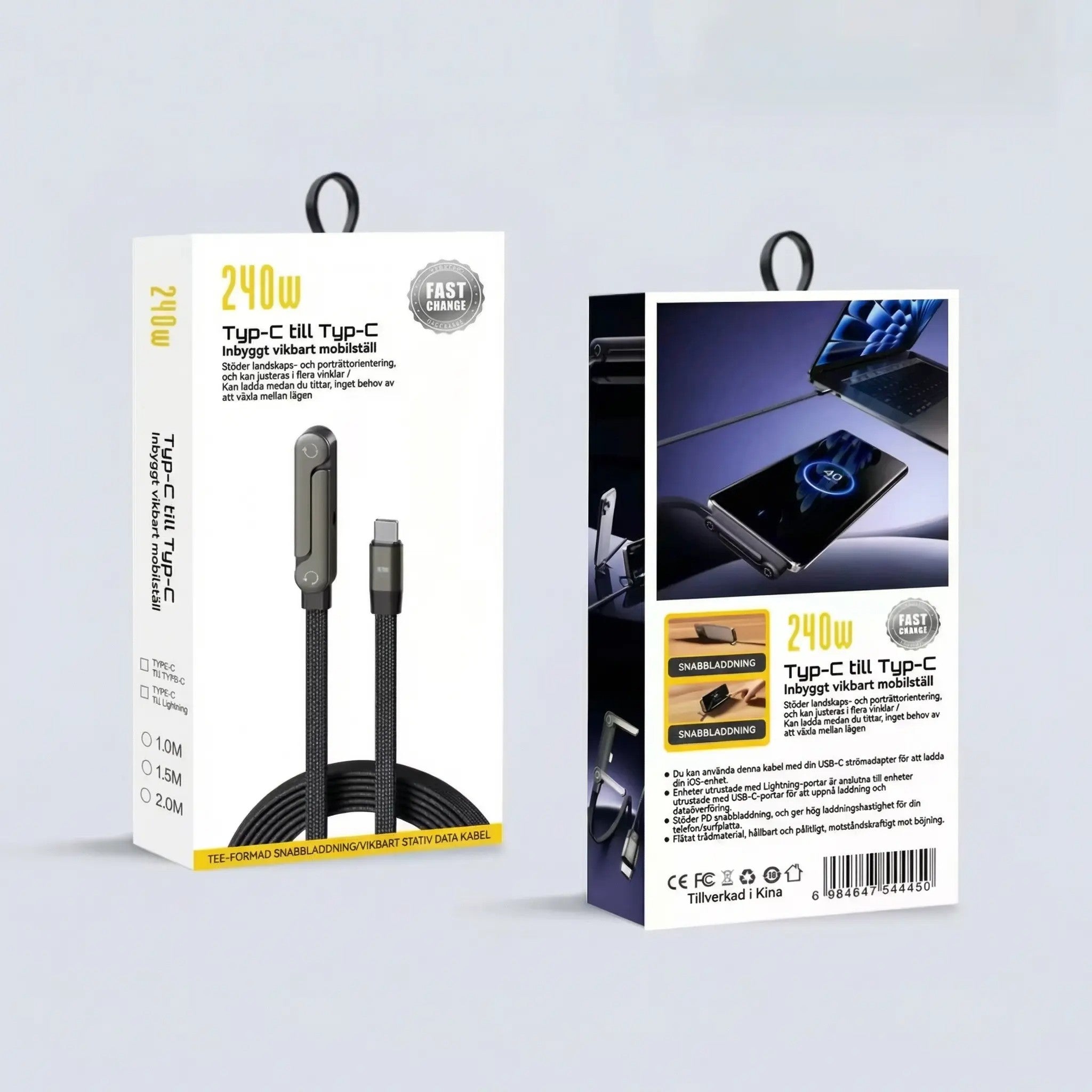 PowerFlex™ 240W – Vikbart Laddställ med Flätad Type C kabel